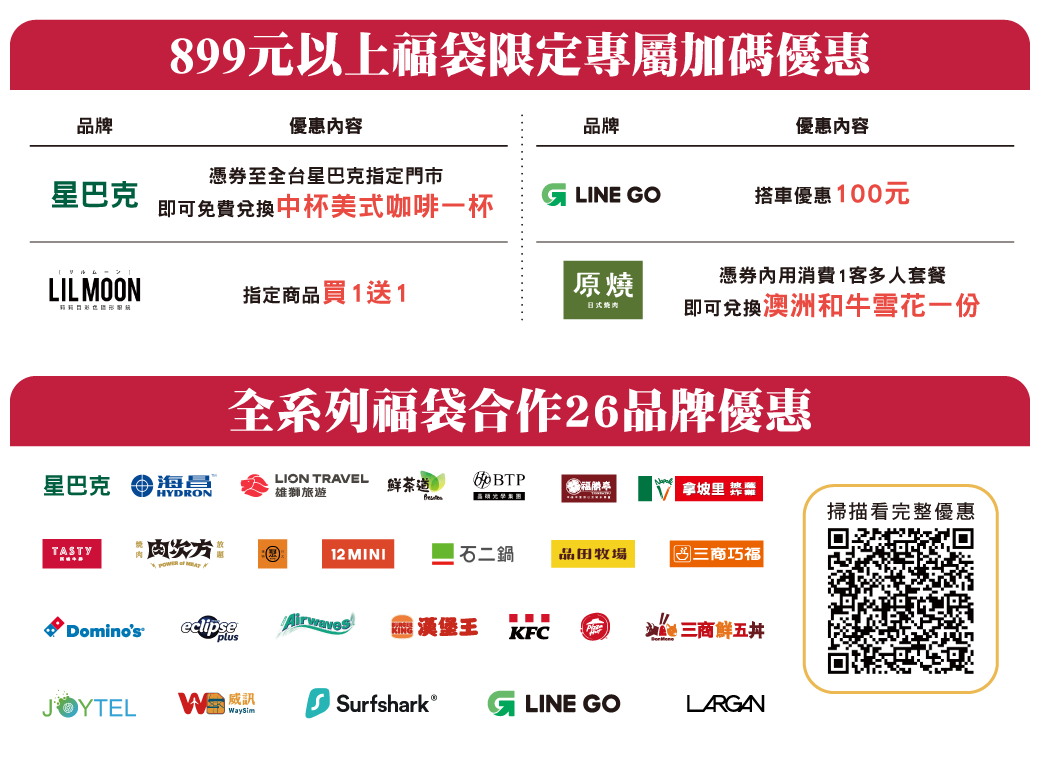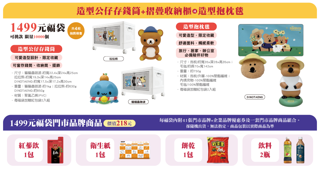 1499元福袋共3款,限量共10,000個(含外送平台+現貨+備品;數量有限,售完為止。)