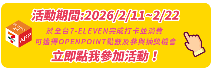 - 完成打卡任務贈予之OPENPOINT點數使用期限為2026/6/30 23:59 ,並於2026/3/31前完成發放 。